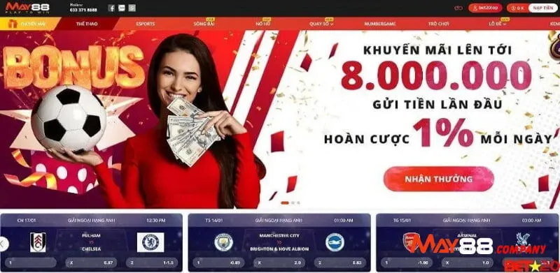 Đây là một trong những nhà cái uy tín hàng đầu tại Việt Nam, với con số hơn 1.6 triệu thành viên tin tưởng lựa chọn. Giao diện hiện đại cùng với kho game phong phú từ thể thao, casino cho đến xổ số, May88 mang đến trải nghiệm cá cược đỉnh cao. Thời gian nạp rút nhanh chóng chỉ từ 1-5 phút kèm theo nhiều ưu đãi hấp dẫn.