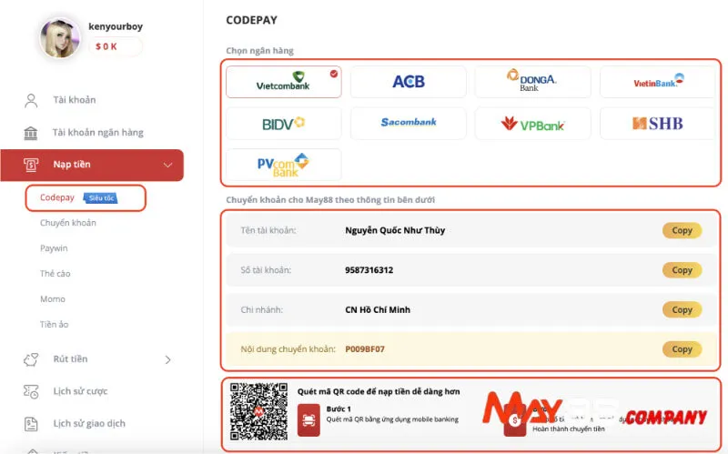 - Bước 4: Sau khi đã giành được những chiến thắng, bạn có thể dễ dàng rút tiền về tài khoản ngân hàng của mình.